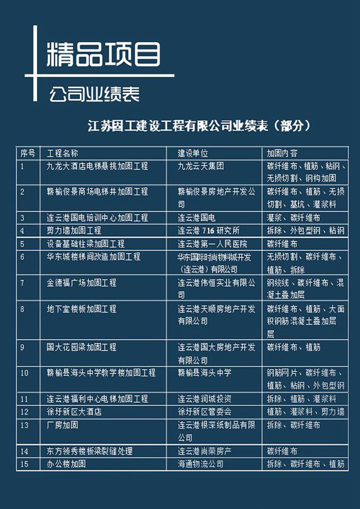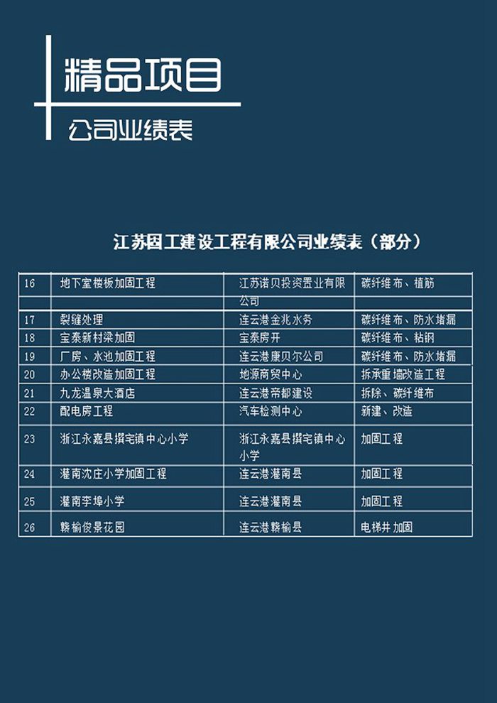 2018年江蘇固工建設工程有限公司業(yè)績表